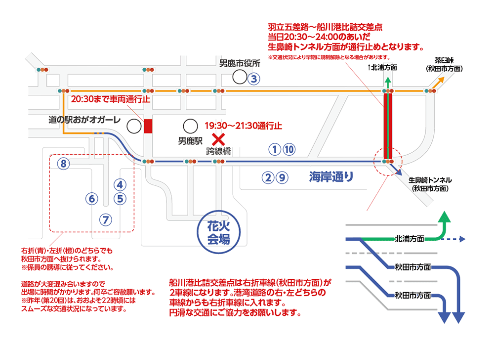 - ※昨年(第20回)は、おおよそ22時頃にはスムーズな交通状況になっています。