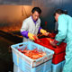 朝帰港した船から上げられた、水揚げ直後の新鮮なカニを、港のすぐそばにある加工場の大型の釜で一気に茹であげ、しっかり冷やして「冷蔵便」で発送しますので、みずみずしい食感や甘さは冷凍物とは比べ物になりません。