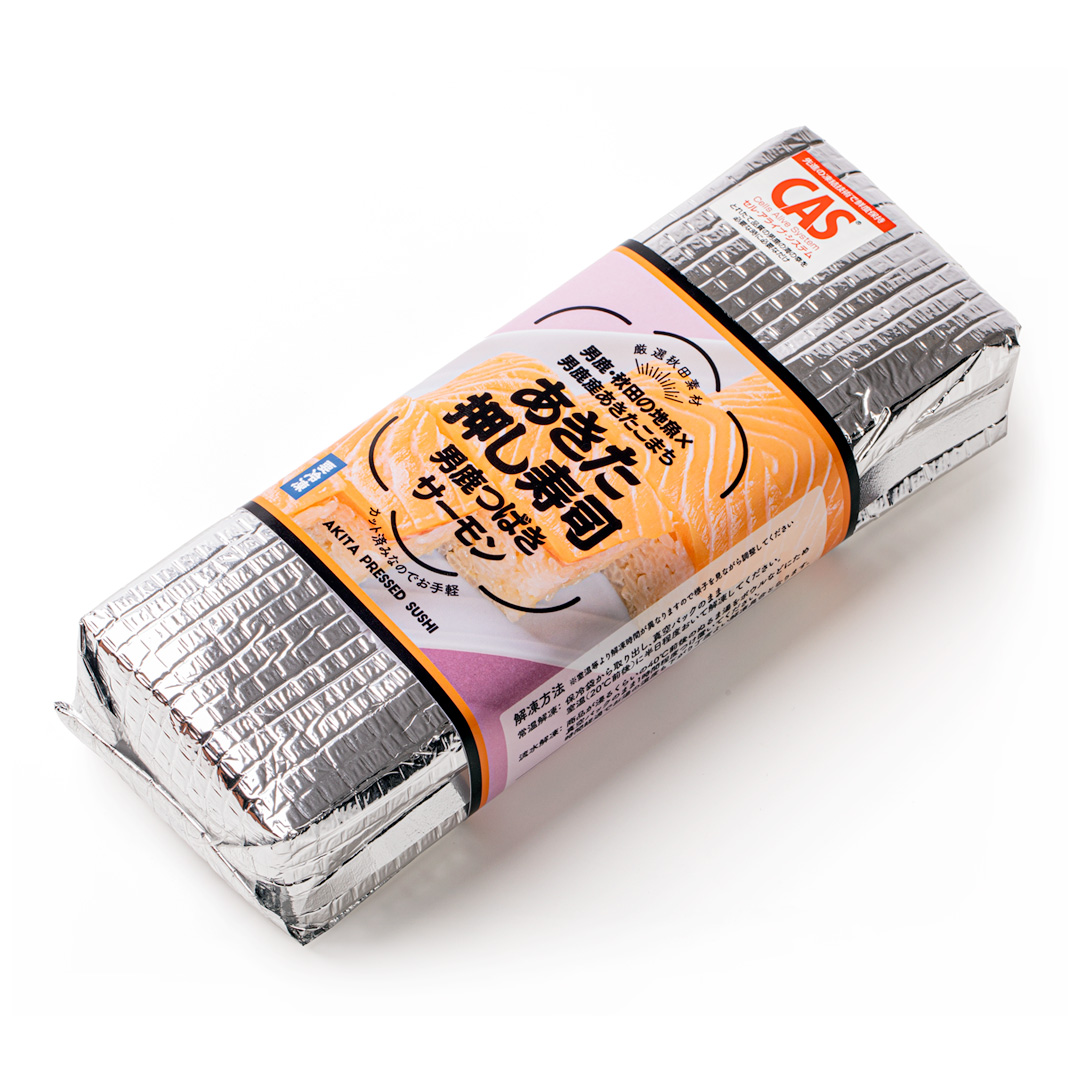 | 原材料 | 酢飯(うるち米(秋田県産)、赤酢、米酢、砂糖、和風だしの素、食塩)、サーモントラウト(秋田県産)、生姜酢漬け、(一部に小麦・さけを含む) |