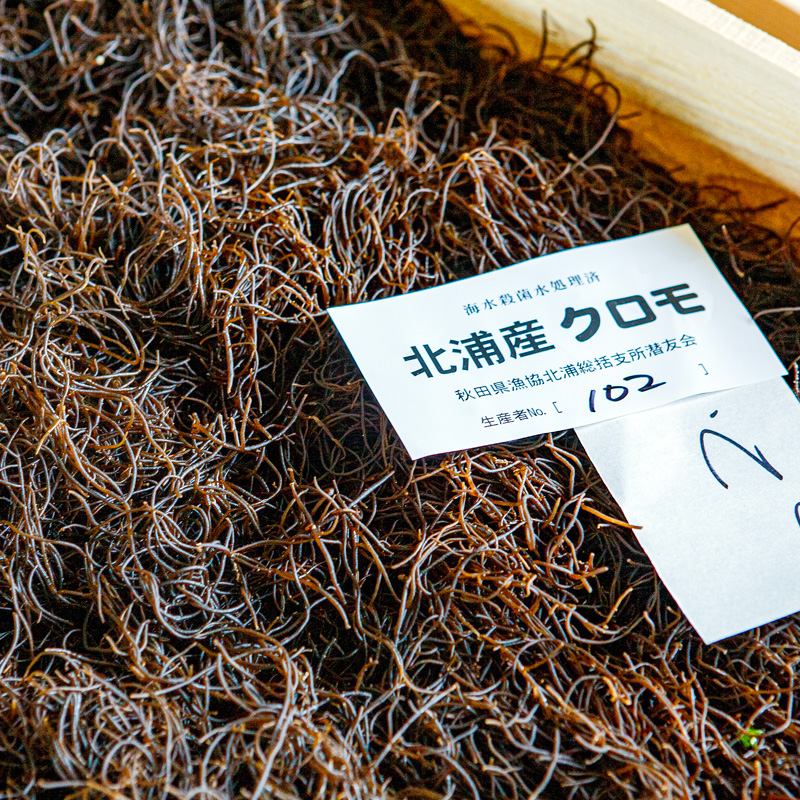 男鹿の北浦地区の海でとれるイシモズクは、地元で「クロモ」と呼ばれ、男鹿の海藻の至高的存在となっています。