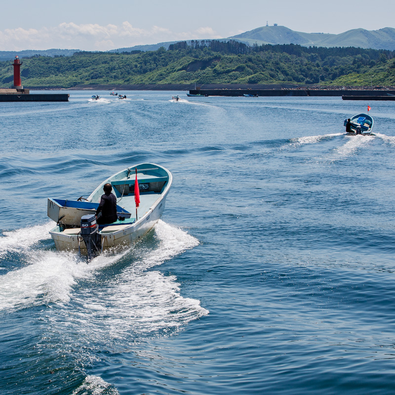 男鹿では北浦などの限られた海域で生育しており、資源保護の観点から毎年初夏に日数・制限時間を厳密に決めたうえで素潜り漁で採取されている、非常に貴重な海藻です(制限時間が決まっているため、一秒でも早く漁場に着こうと全開で疾走する出漁風景はまるでボートレースのような迫力です)。